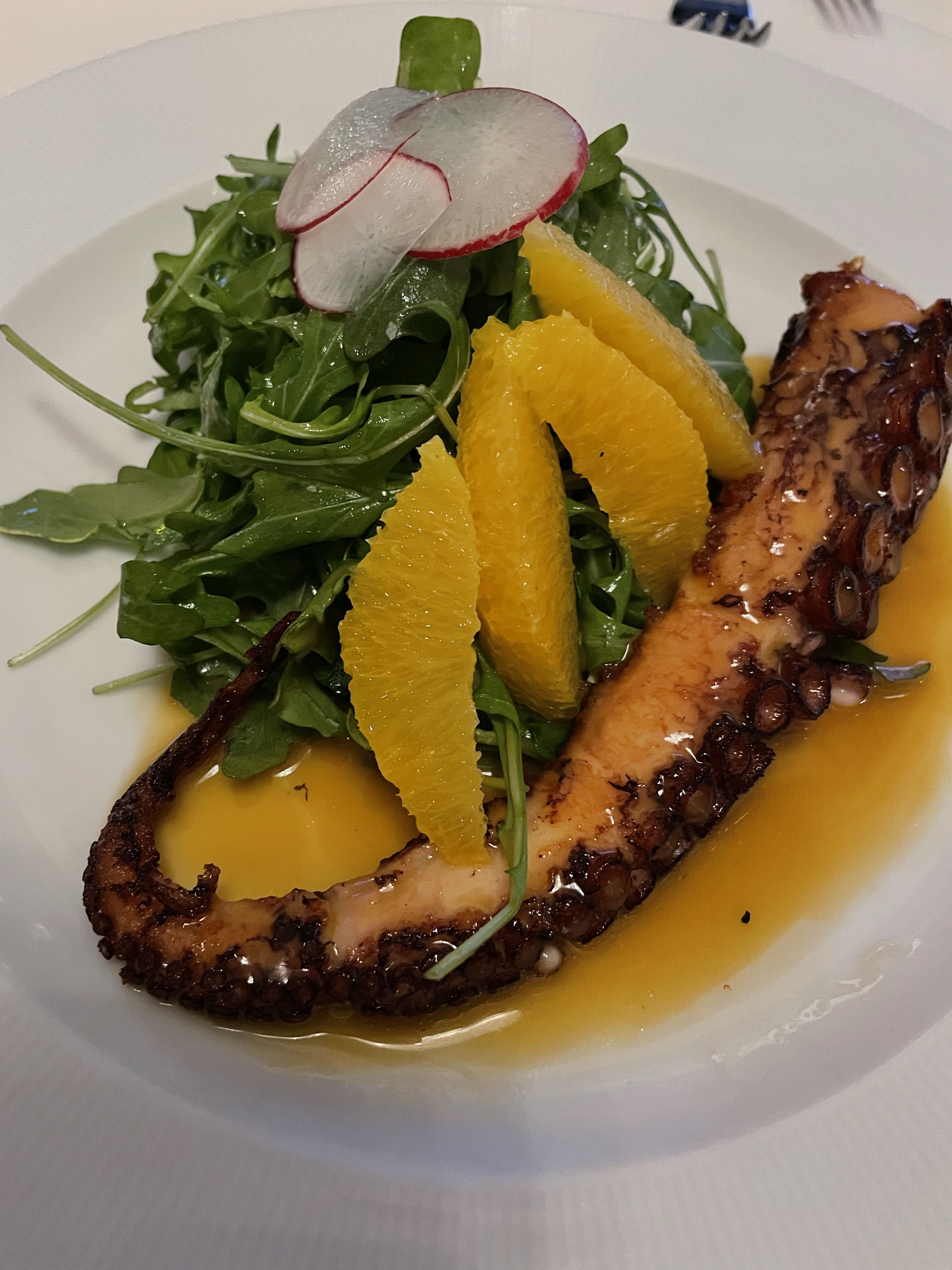 We started our evening with Grilled Octopus served with leafy greens and a citrus sauce. The octopus was very well prepared with a great char while remaining tender. It was complemented by the citrus sauce.