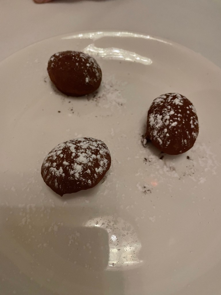 Finally, we finished with an interesting mignardise or amuse bouche – chocolate dipped grapes. A simple and light after dinner treat.