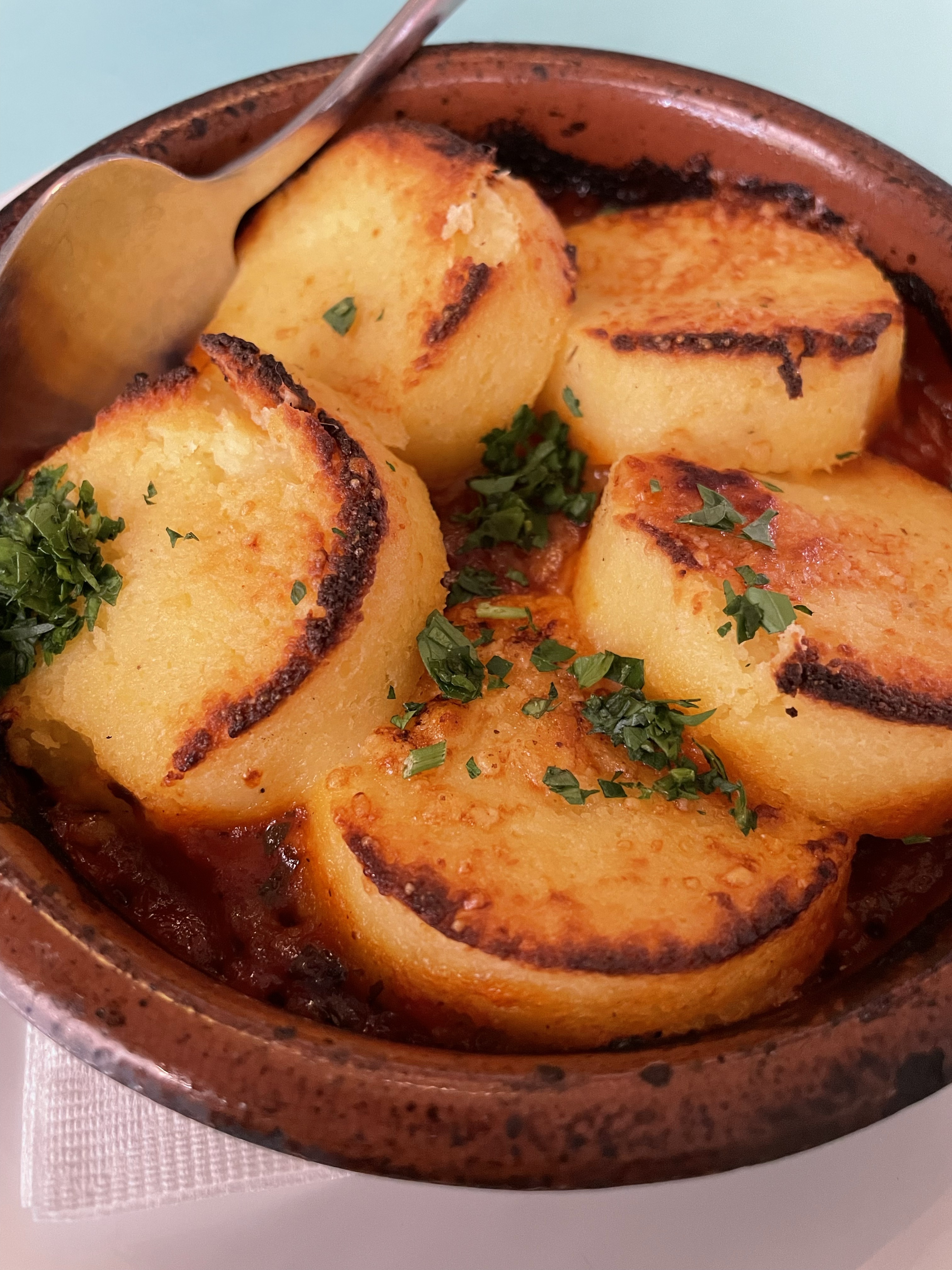 The Porchetta e Fagioli is a Berkshire pork butt that is slow roasted and “aggressively seasoned” with fennel, rosemary, garlic and black pepper. It is served over cannellini beans that are stewed with tomato, garlic and sage. They were not kidding about aggressively seasoned! The pork butt is over-powered by the seasoning, so as a result, I can not recommend this dish.