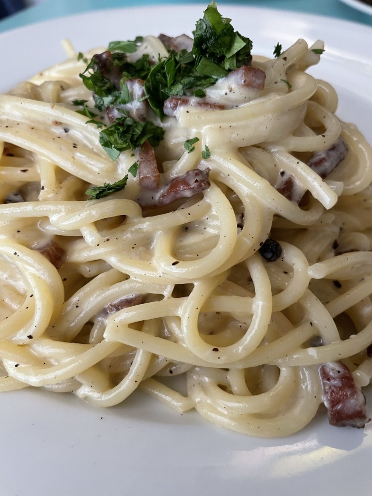 For the mains, we split two different dishes – Porchetta e Fagioli and Spaghetti alla Carbonara.