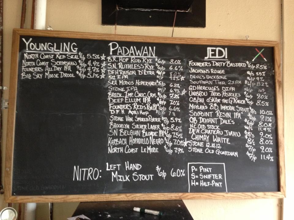 They have a beer list that rotates frequently, with the taps along the walls and the door to the large walk-in fridge. The staff is quite knowledgable about the beers, so once Pam described what she likes, they chose a perfect pilsner for her. I also took their recommendations, and it did not disappoint. The picture below shows the beer selection during our visit.