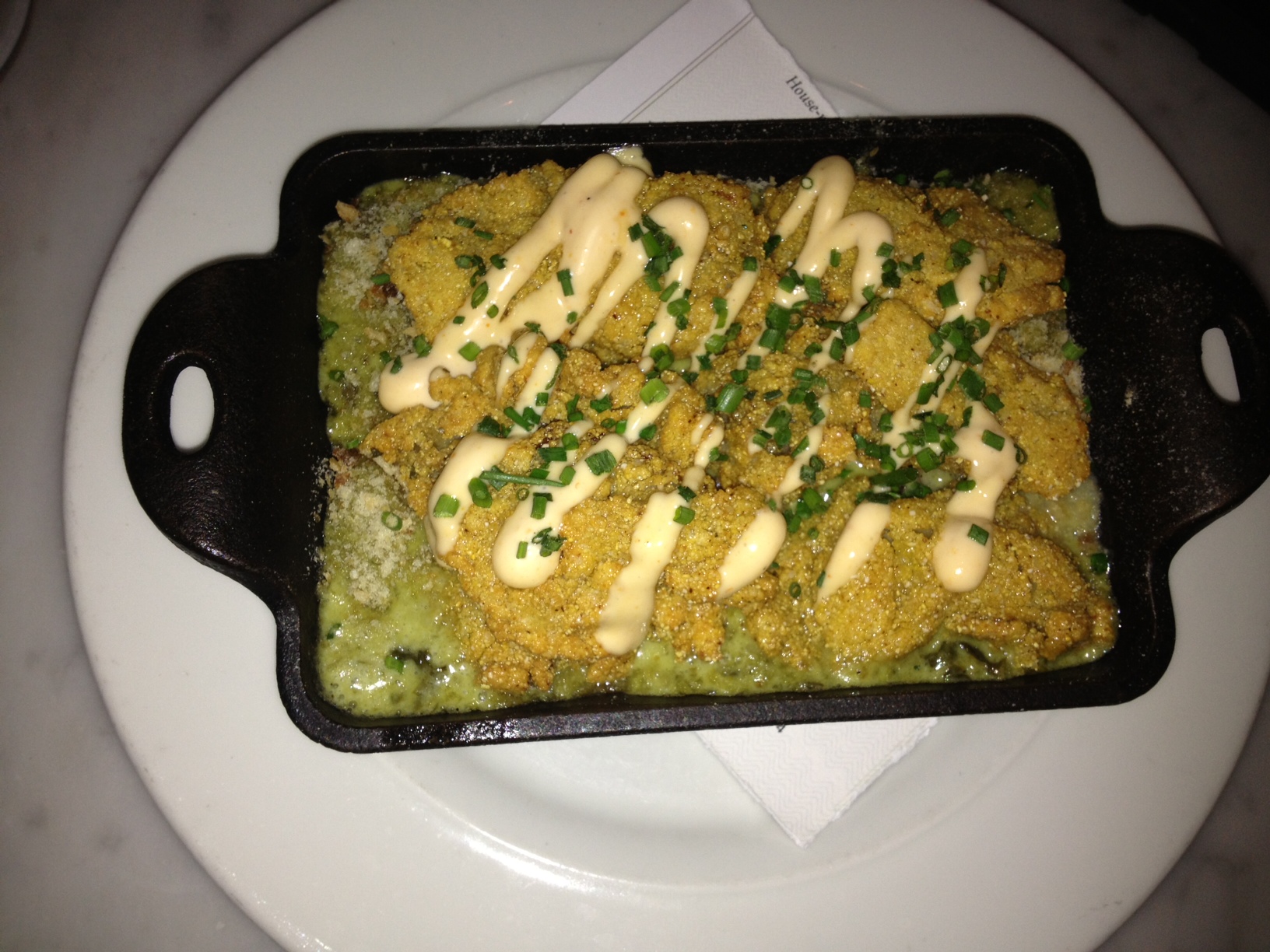 Finally, we rounded out the evening with the Crispy Gulf Oysters over creamy spinach, bacon and a spicy remoulade. This was the best dish of the evening. Jeff loved the oysters and all the flavors were great. This was also the highest calorie dish, so you see where we stand!