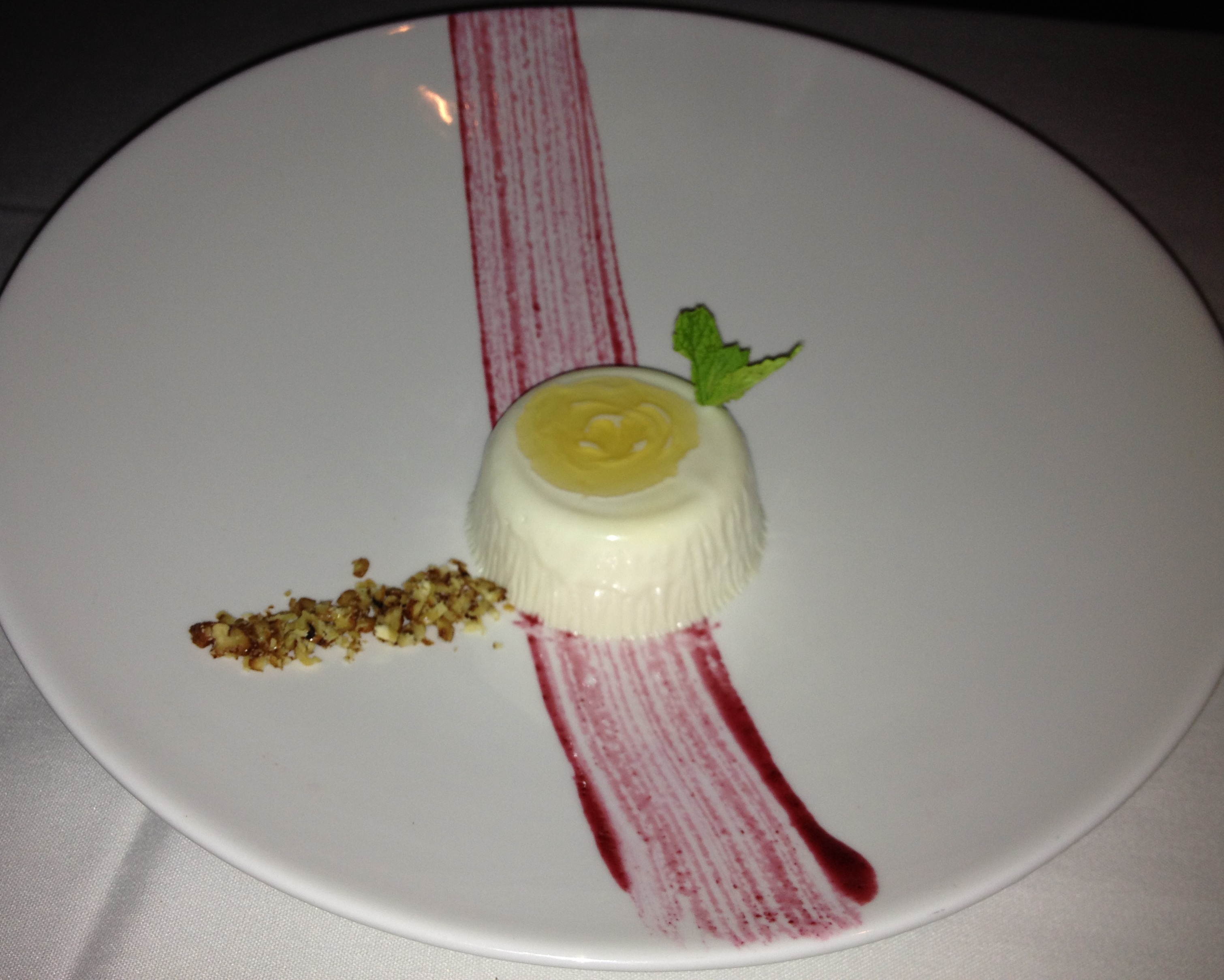 We were completely full following our meal, but the desserts were not to be ignored. We chose to split the goat cheese panna cota which was a wonderful choice. It had a smear of a port raspberry reduction with chopped candied pecans, and it was very creamy. The flavors blended well, however we craved more of the reduction.